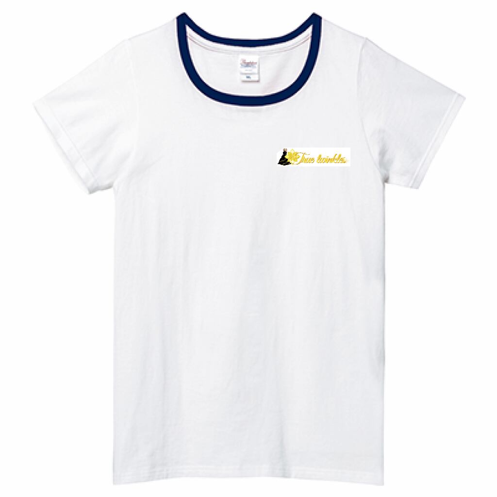 True twinkles♥mini.ヘビーウェイトTシャツ☁Ladies〔Printstar☁Ponytail✵੯•`໒♥White × Navy × Yellow